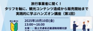 【10月10日・参加無料・初心者OK】新しい観光創出セミナー2025~旅行事業者に聞く!タリフを軸に、観光コンテンツ造成から販売開始まで実践的に学ぶハンズオン講座~第1回