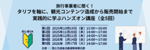 【2025年10月~2026年2月】新しい観光創出セミナー2025~旅行事業者に聞く!タリフを軸に、観光コンテンツ造成から販売開始まで実践的に学ぶハンズオン講座~(全5回)